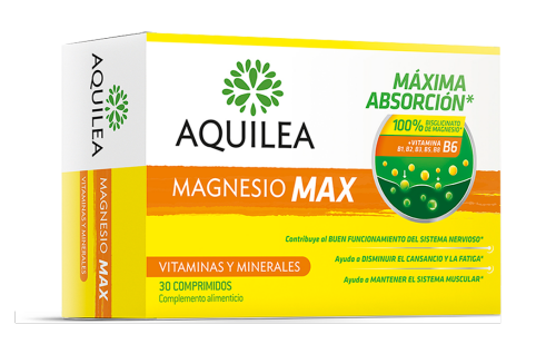 Aquilea Magnesio MAX te ayuda a ayudar a disminuir el cansancio y fatiga. Contribuye al funcionamiento normal de los músculos y al mantenimiento de los huesos y al funcionamiento normal del sistema nervioso. Además, contiene vitaminas del grupo B (B1, B2, B3, B5, B6 y B8) que ayudan al metabolismo energético normal.