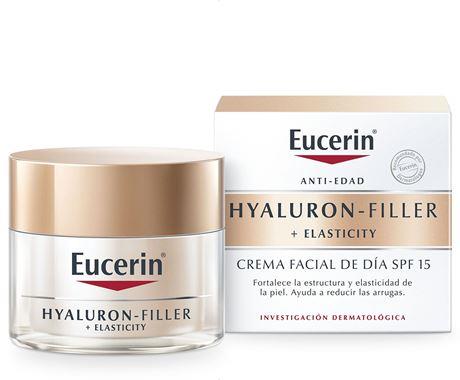Eucerin ELASTICITY+FILLER Day Care también contiene FPS 15 con un filtro UVA para mayor protección frente a los rayos que pueden hacer más profundas las arrugas y acelerar el proceso de envejecimiento de la piel.